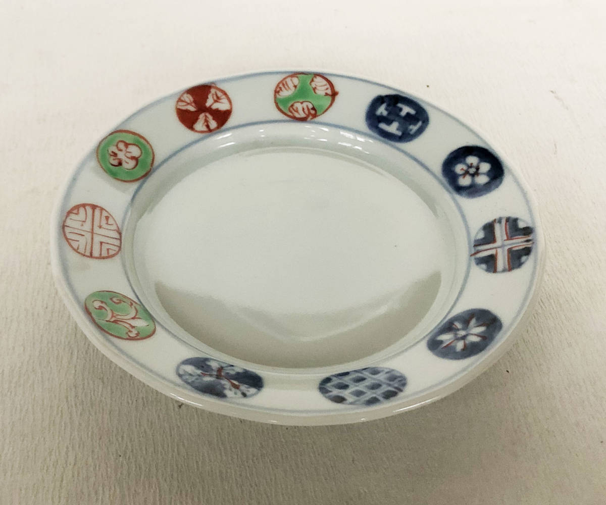 - 染錦丸紋4.5寸皿 14㎝ 5枚 福珠窯 有田焼 銘々皿 取皿 煮物皿