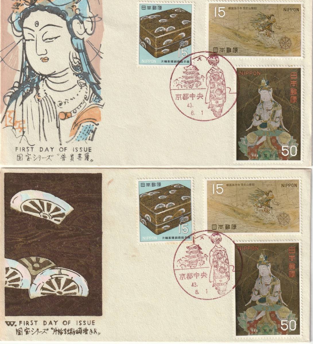 - FDC 1968年 第1次国宝シリーズ 第3集 平安時代 3貼 カシエ1-2 松屋