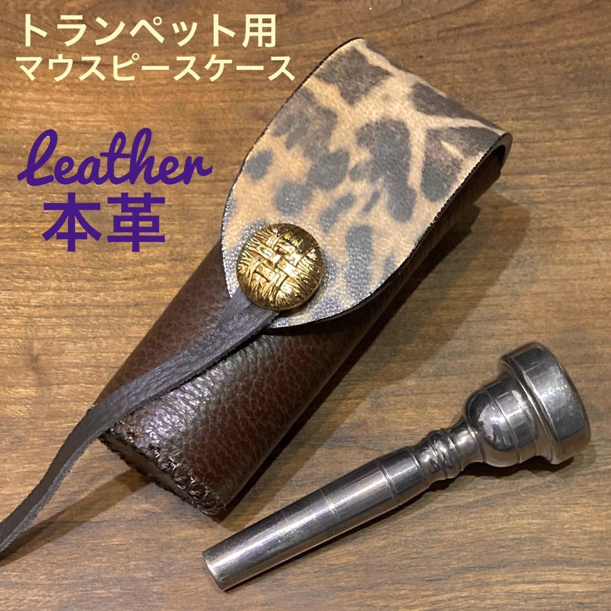 > [本革] トランペット 高級 マウスピースポーチ ケース ヒョウ柄×ダークブラウン レオパード