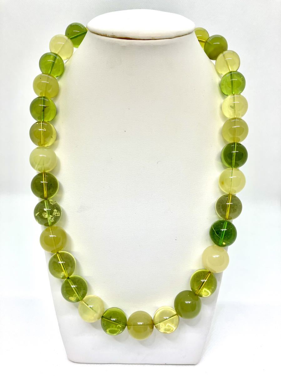 - 【新品】リトアニア産グリーン琥珀ネックレス*アンバー*マルチカラー*希少レア*シンプル一連*こはくコハク*真円*貴重*うぐいす色