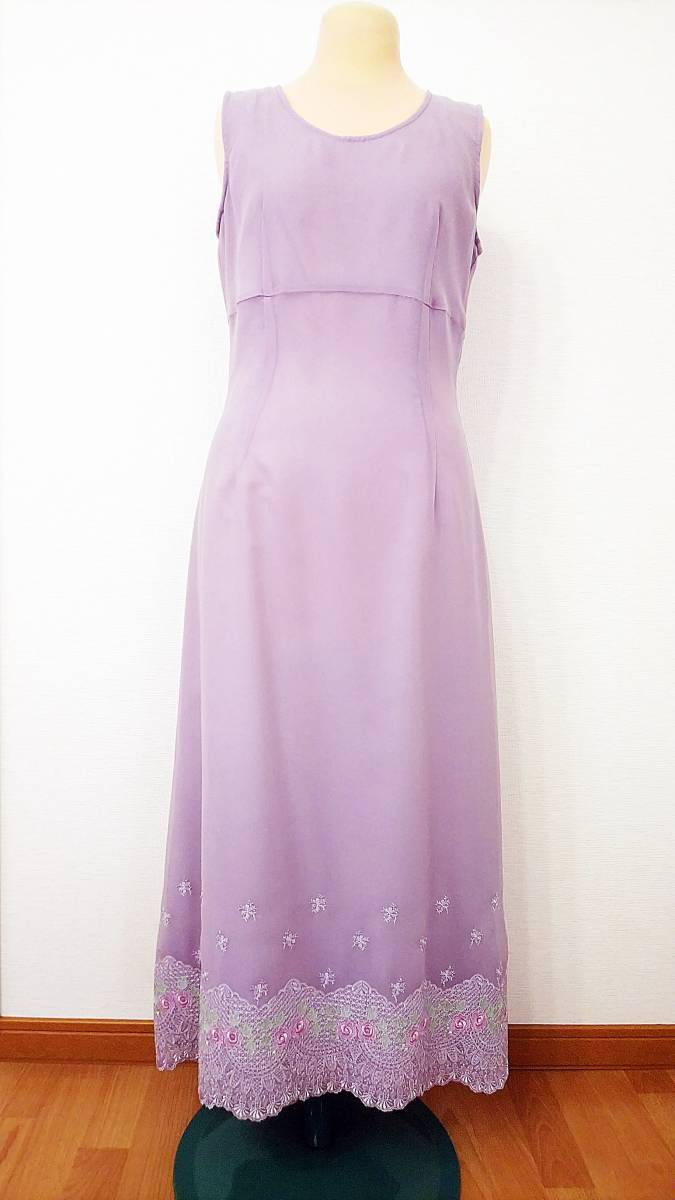- 美品 ラ・エスト ワンピース 花柄 刺繍 パーティー ノースリーブ 紫ピンク M 藤色 セレモニー 結婚式