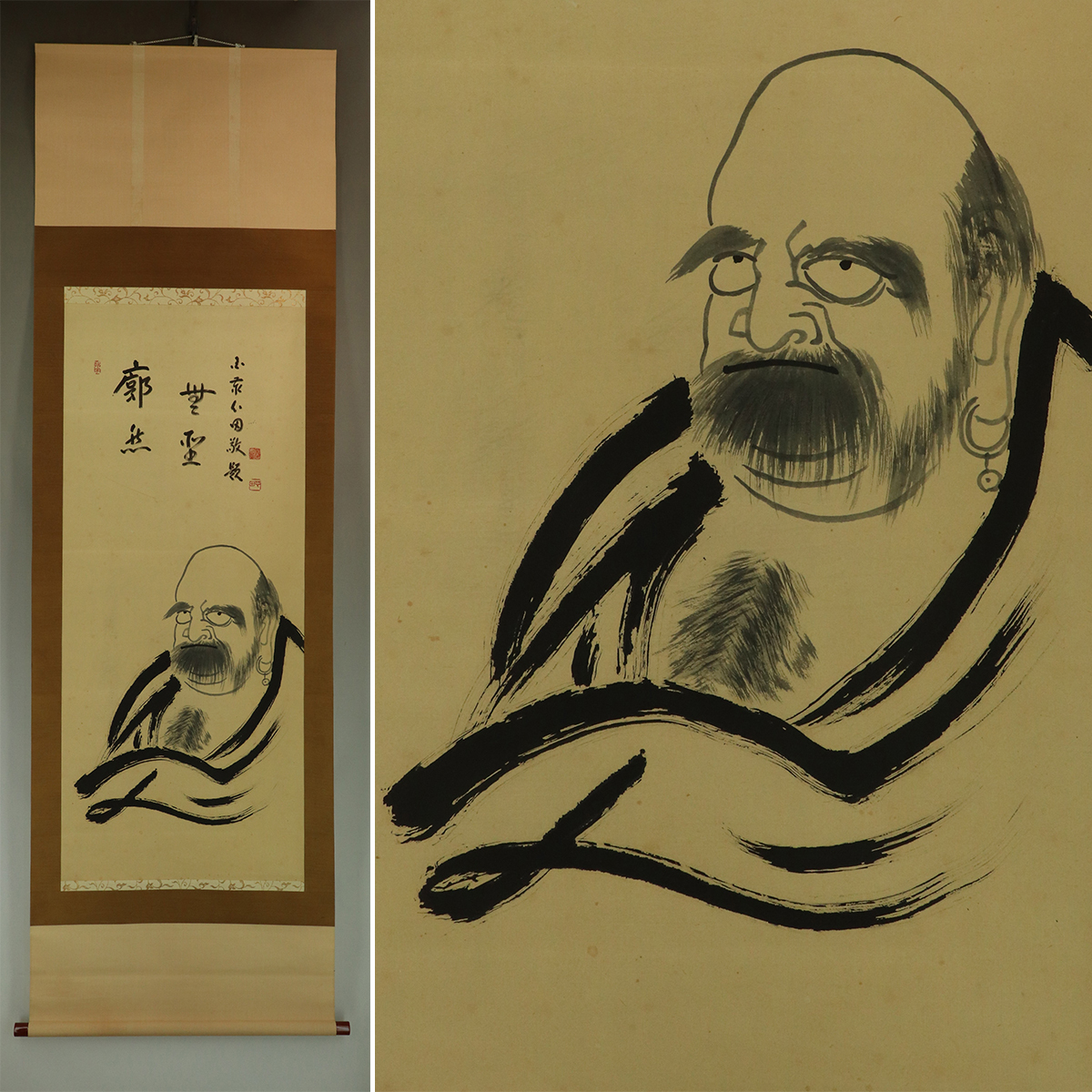 - 【真作】稲葉心田【達磨画賛】◆紙本◆合箱◆掛軸 t01164