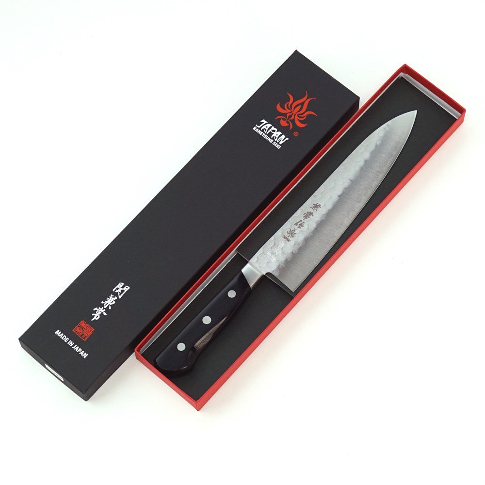 > 包丁 日本製 KC-922 関兼常作 青鋼 梨地口金付 黒合板柄 牛刀 200mm