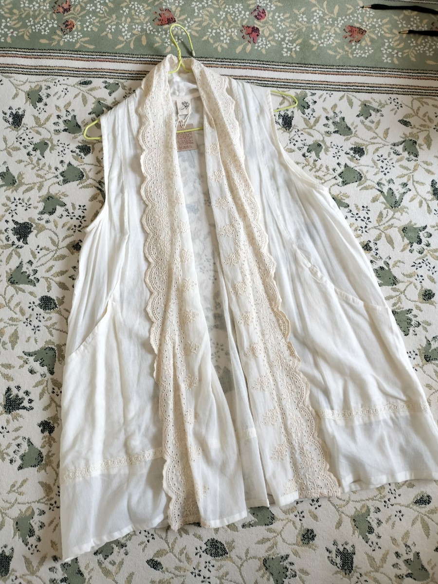 - 新品★雑貨屋さん購入ナチュラルレースのロング丈 ワンピースに重ねて!ジレSM2ナチュリラスタジオクリップ好きに