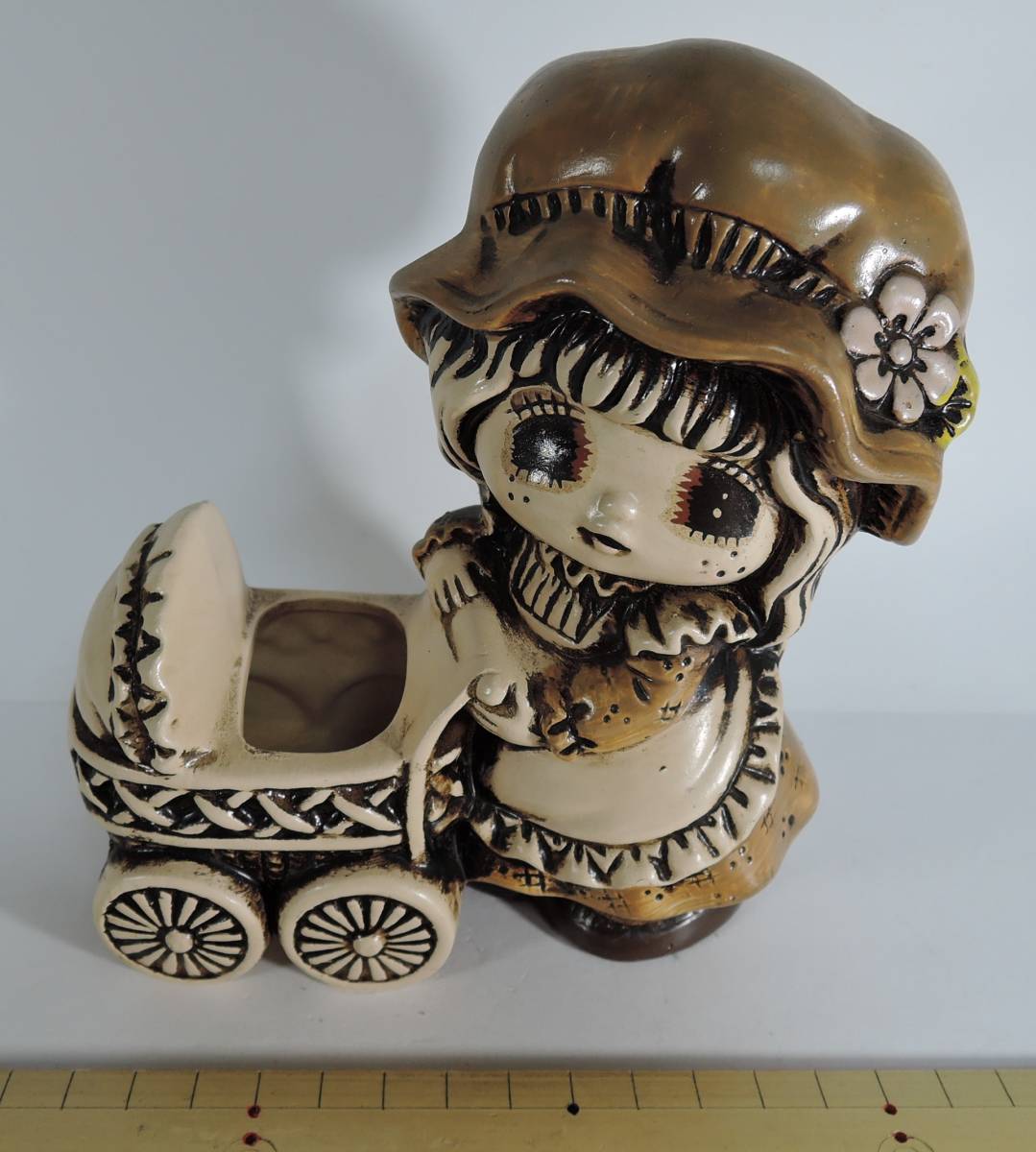 - ☆V06 昭和レトロ■乳母車を押す女の子 貯金箱 陶器製■