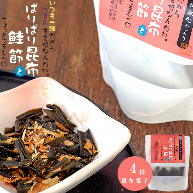 - ぱりぱり昆布と鮭節 16g ×4袋 北海道産こんぶ おやつ 昆布チップス チップ お土産 贈物 手土産 サケ節【メール便対応】