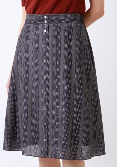 > NEWYORKER*ニューヨーカー*フレアースカート*ドットストライプ*ウエスト背面ゴム*膝丈*定価1.8万*9号*Mサイズ*ネイビー*オフィスカジュアル