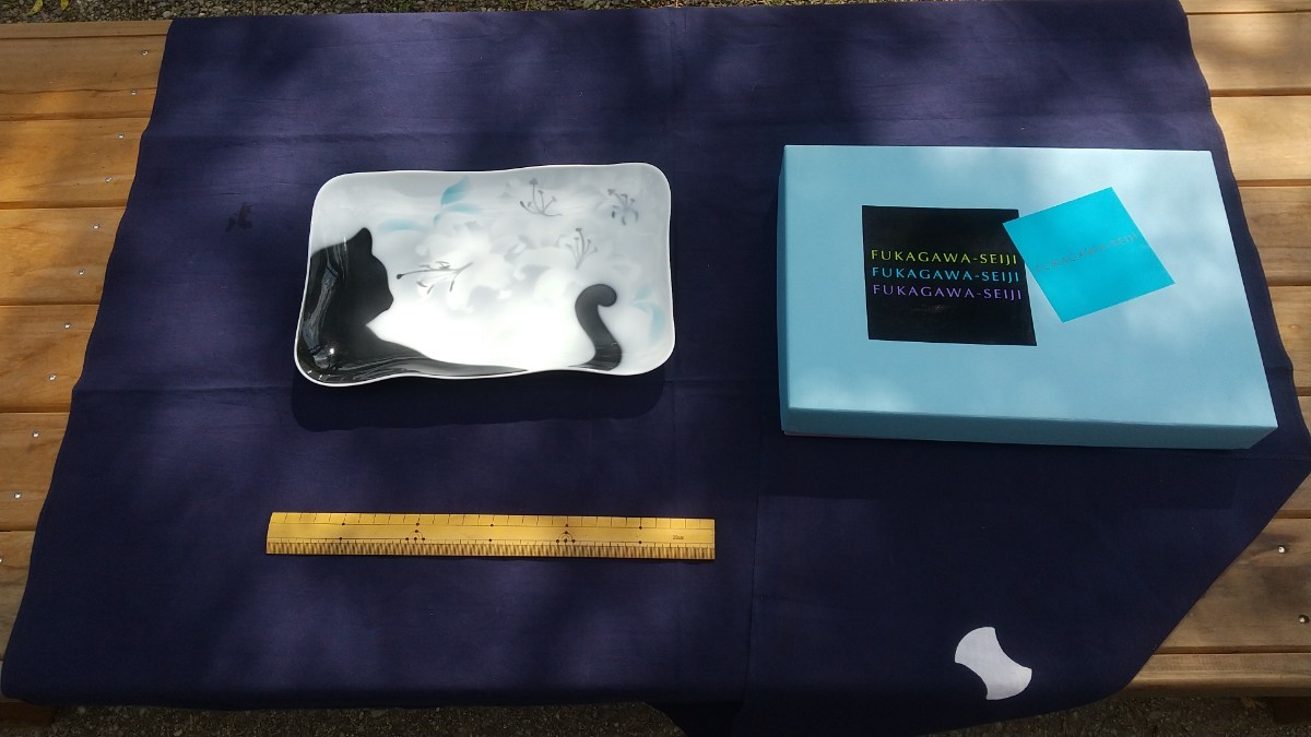 - 深川製磁 猫シルエット スクエアトレー 紙箱