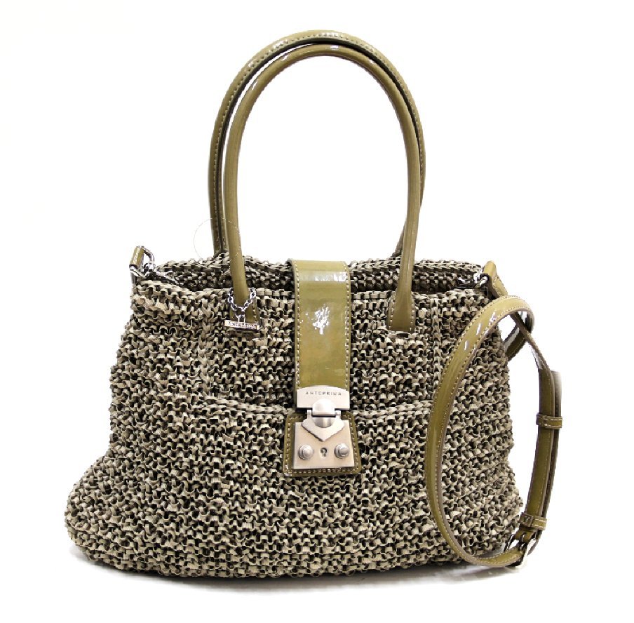 > ANTEPRIMA アンテプリマ 2WAYハンドバッグ PB12SK9325 PVCワイヤー ナイロン カーキグレー