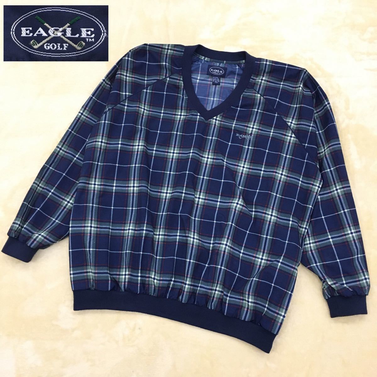 > EAGLE GOLF イーグル ゴルフウェア スポーツ ナイロン ピステシャツ ウィンドブレーカー Vネック チェック 刺繍ロゴ メンズ 大きいサイズXL
