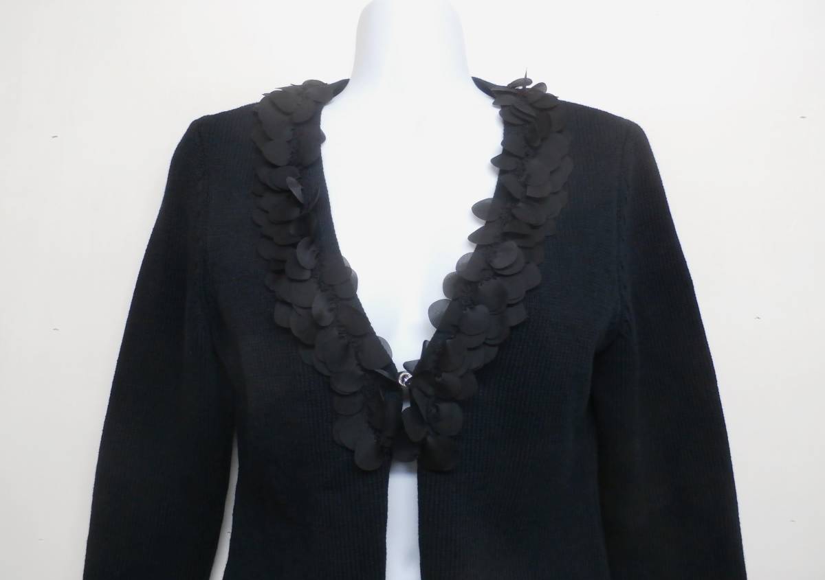 > [30885] Harrods:ハロッズ / お洒落なモチーフ付き / 黒カーディガン / 日本製