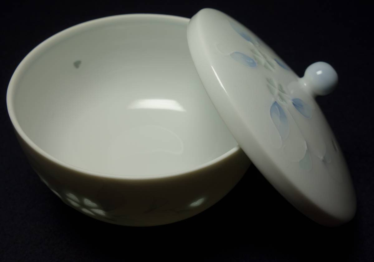 - 昭和期 最高級倣徳化白磁 手彫り花図 蓋付き 煎茶碗 陶磁器研究