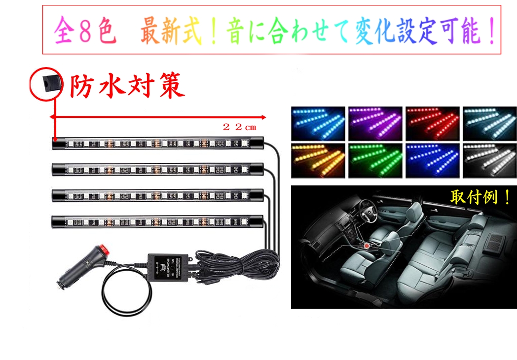- 【在庫処分セール】フットLED/車内装飾用LEDライト テープライト 全8色に切替・ミュージックに合わせても変わる 送料無料 ⑤