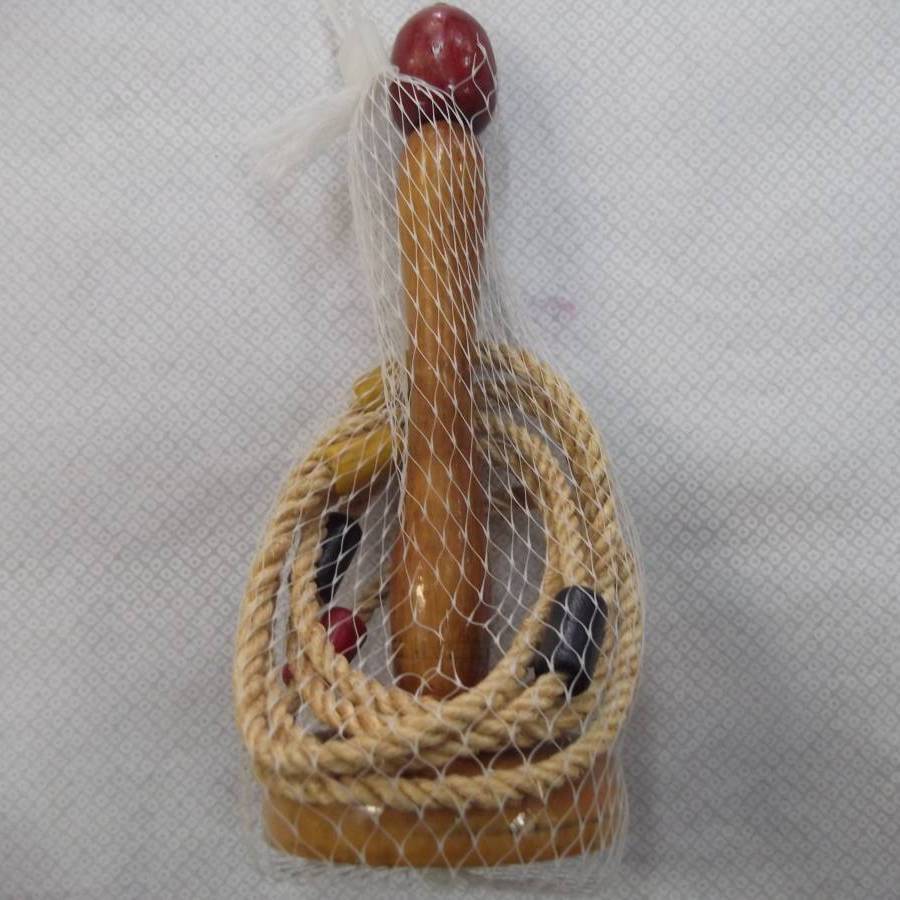 - 【送料:佐川60サイズ】木製輪投げセット 22cm 輪っか5個 色やけあり