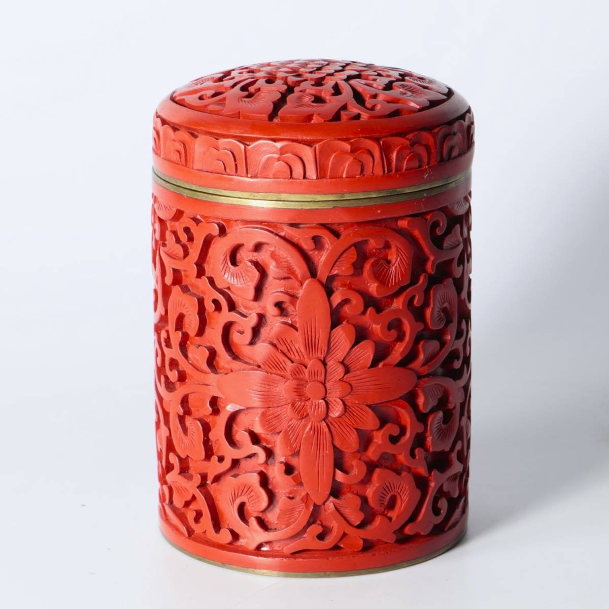 - ◆◇中国美術 堆朱 彫漆内七宝細密唐草花文 茶入■茶壺 茶道具 蓋物 中国古玩 時代 骨董◇◆