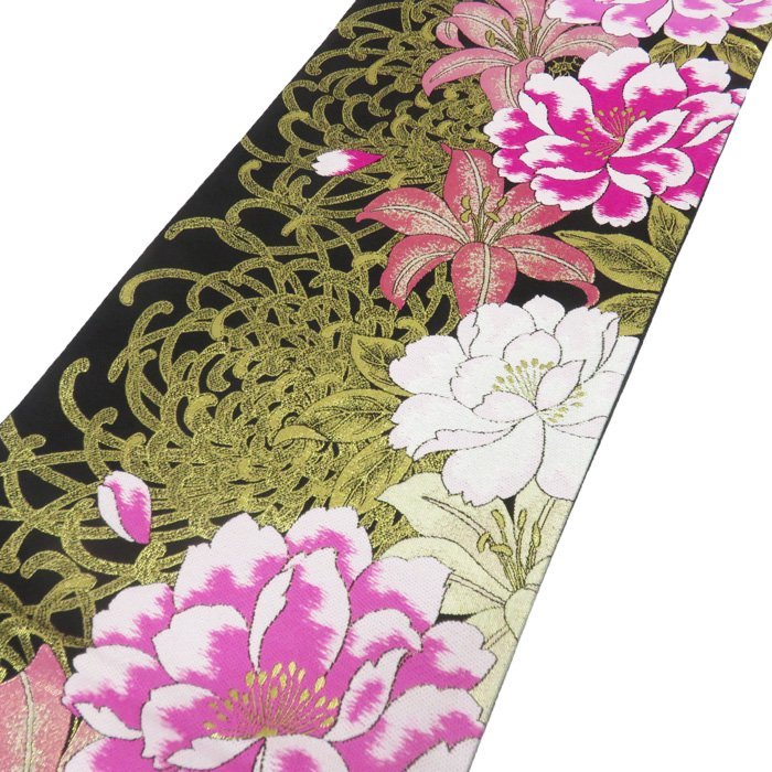 - ★きもの北條★ 振袖用 花模様 百合 牡丹 菊 リサイクル 着物 成人式 結婚式 結納 パーティー 袋帯 A750-19 【中古】