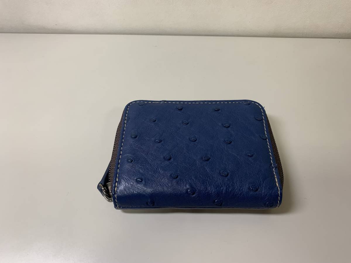 - 【質屋 尾張屋商店 東京】☆極美品☆ オーストリッチ 本物 ラウンドファスナー 財布 青
