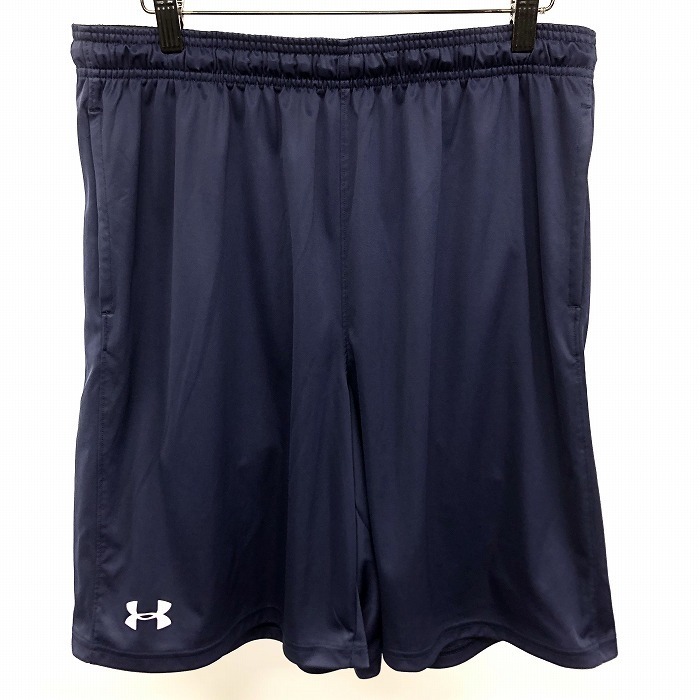 - アンダーアーマー UNDER ARMOUR 薄手 スポーツ ショーツ ショートパンツ ハーフパンツ ウエストにゴムと紐 ポリ100% XL ネイビー 紺 メンズ