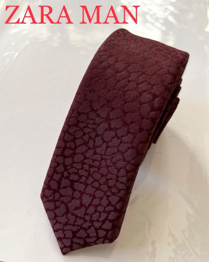 - 1円 美品 ZARA MAN バーガンディー 柄ネクタイ メンズ