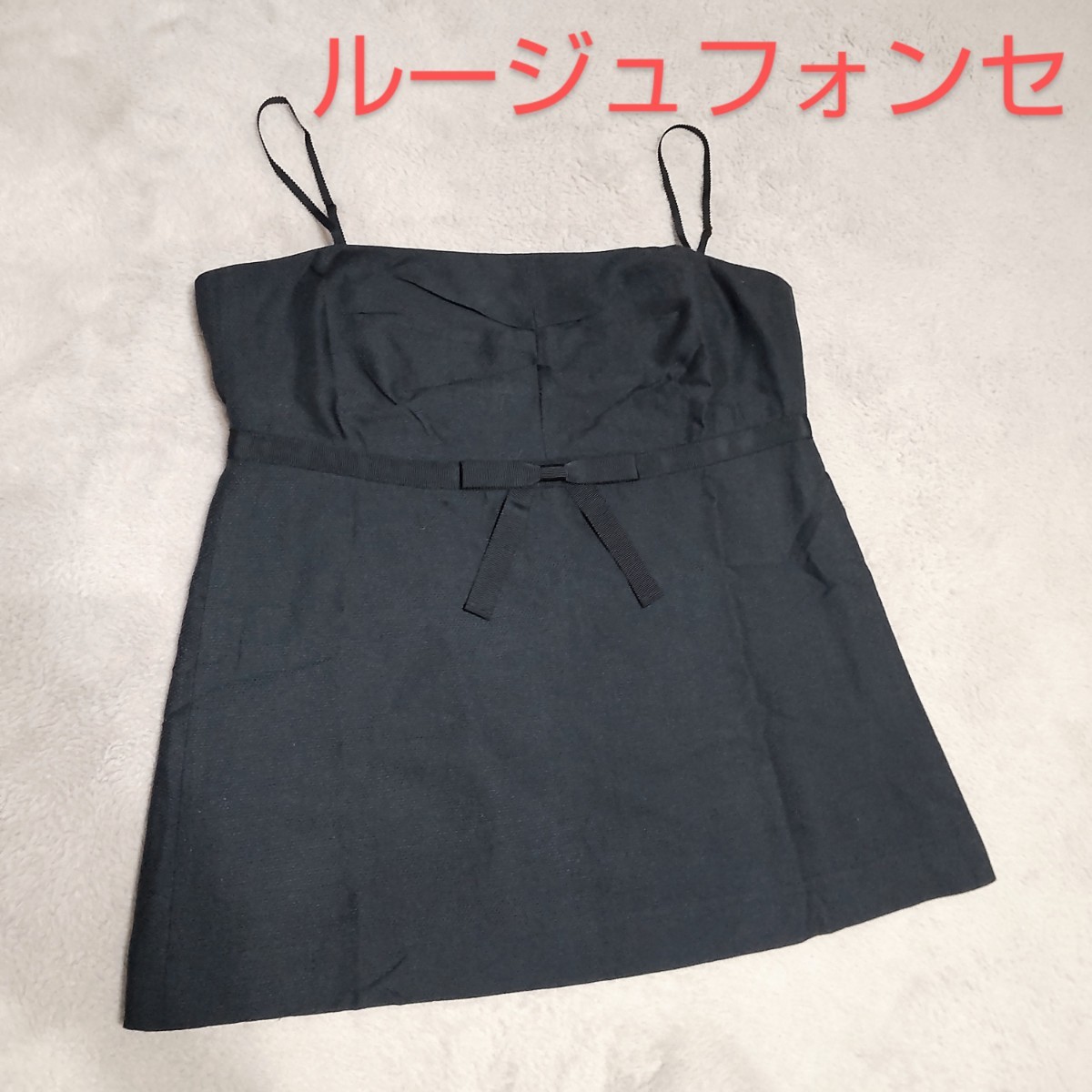 > ルージュフォンセ ルージュヴィフ アバハウス 黒 ビスチェ キャミソール カットソー リボン Tシャツ重ね着 可愛い キレイ系 上品 セクシー