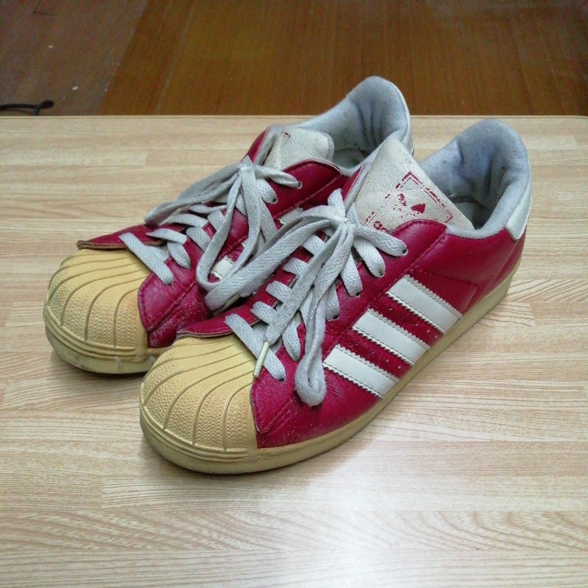 - 古着 シューズ adidas antique ヤレヤレ 赤 24cm 使い込み 靴 送料520円他