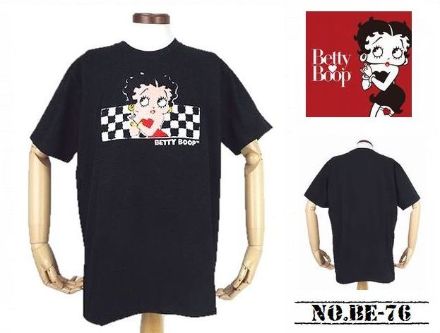 > 【送料無料 30%OFF】Betty Boop ベティ ブープ サガラ刺繍Tシャツ - PLAYING HAND - BE-76 BLACK_XLサイズ