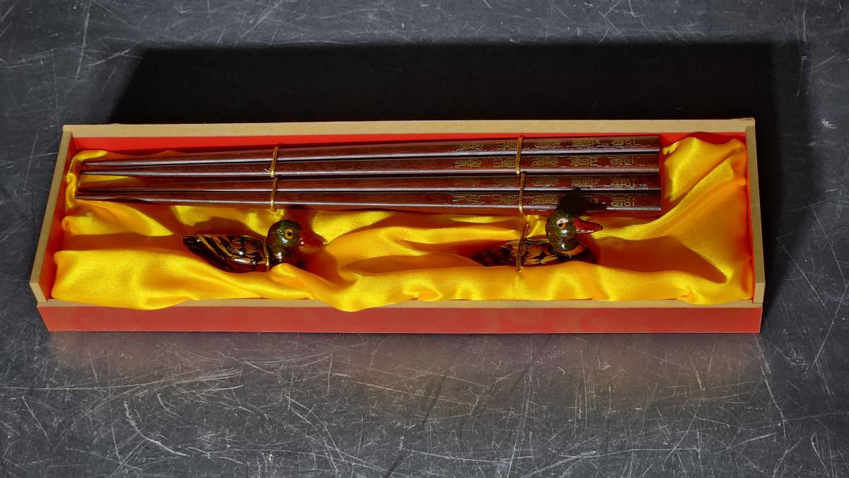 - 箸2膳セット 箸置き付き 鴨 中国 箱付き 贈答品
