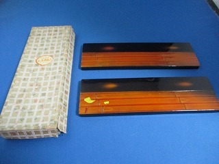 - ★漆器 花台? 2枚重ねて使用するタイプ 1枚のサイズ*7.5×24㎝ ※少々汚れ・剥げ・箱の状態悪い tm2306-4-4★