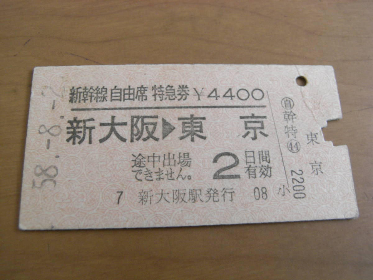 - 新幹線自由席特急券 新大阪→東京 昭和58年8月2日 新大阪駅発行