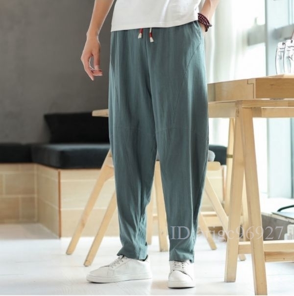 > H425★夏サルエルパンツ メンズ ワイドパンツ 麻パンツ 綿麻 リネンパンツ イージーパンツ カジュアル ゆったり ロングパンツ M~5XLブルー