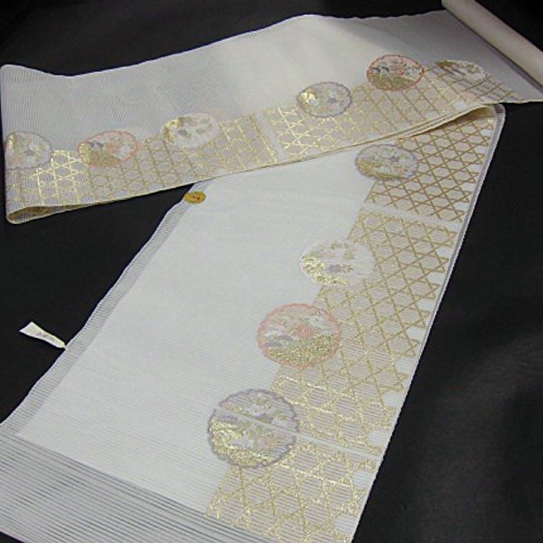 > 上質な逸品 夏物 新品未仕立 西陣織絽高級九寸名古屋帯 名門・ふくい織物謹製 雪輪華文