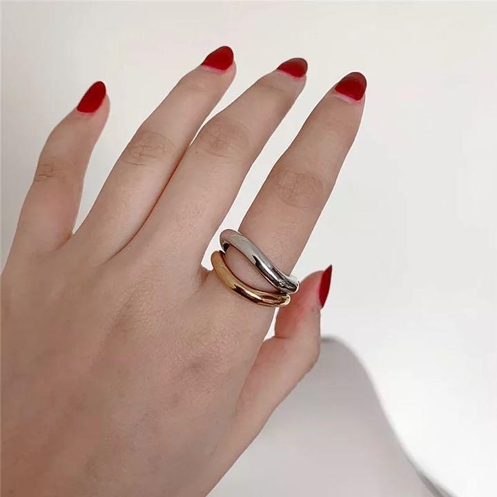 - ウェーブリング ゴールド+シルバー 13号 重ね付け 韓国 シンプル セット 指輪 レディース 人気 アクセサリー かわいい 新品