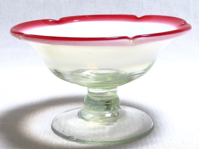 - ガラス 氷コップ 気泡硝子 フリル 赤色 乳白 アンティーク