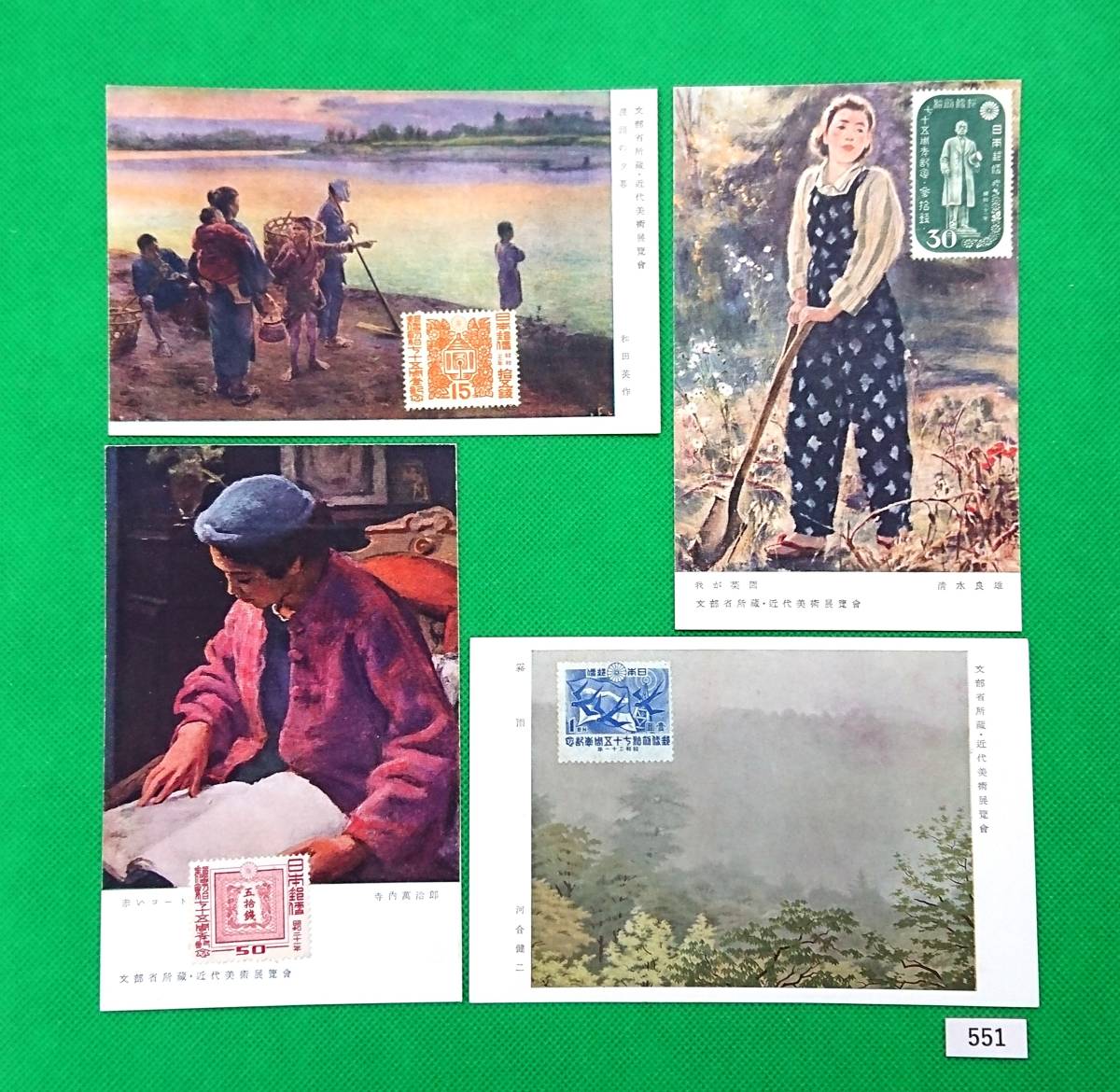 - 古い絵葉書/ア/文部省所蔵近代美術展覧会/和田英作/清水良雄/寺内萬治郎/河合健二/美術工藝會/郵便創始75年切手貼/レトロ/希少品/№551