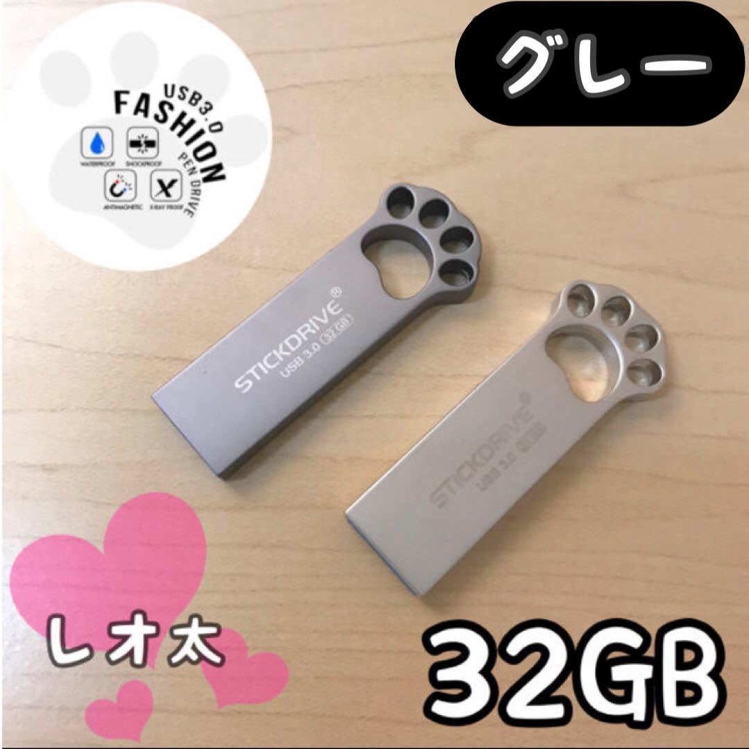 - 【火曜日終了】防水! カワイイ 肉球USBメモリ 32GB USB3.0 猫の手 グレー