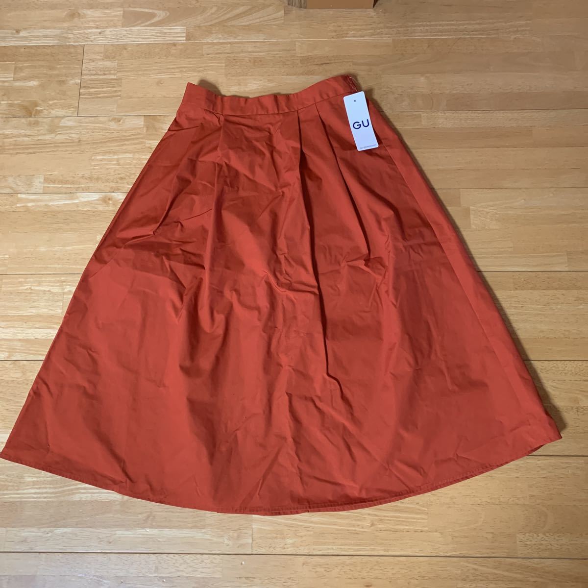 > GU ジーユー レディース カラーフレアスカート 茶 ウエストゴム サイズM ウェスト62-68cm WOMEN 新品 タグ付 送料無料