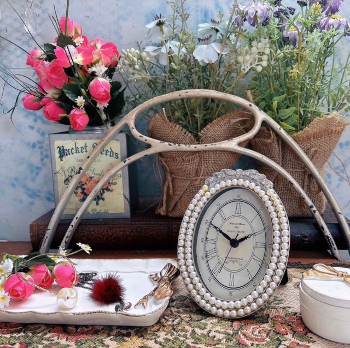 - アンティーク調/ シックでエレガントな置き時計 type.6 /Perl /オーバル/テーブルクロック #店舗什器 #置き時計 #クラシッククロック