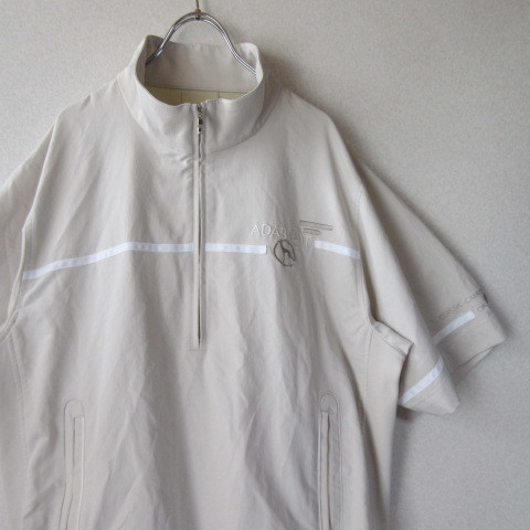 - ○良品 adabat アダバッド◆ゴルフウエア 半袖 ハーフジップシャツ クロスジャージ◆メンズ ベージュ/ホワイト サイズ46