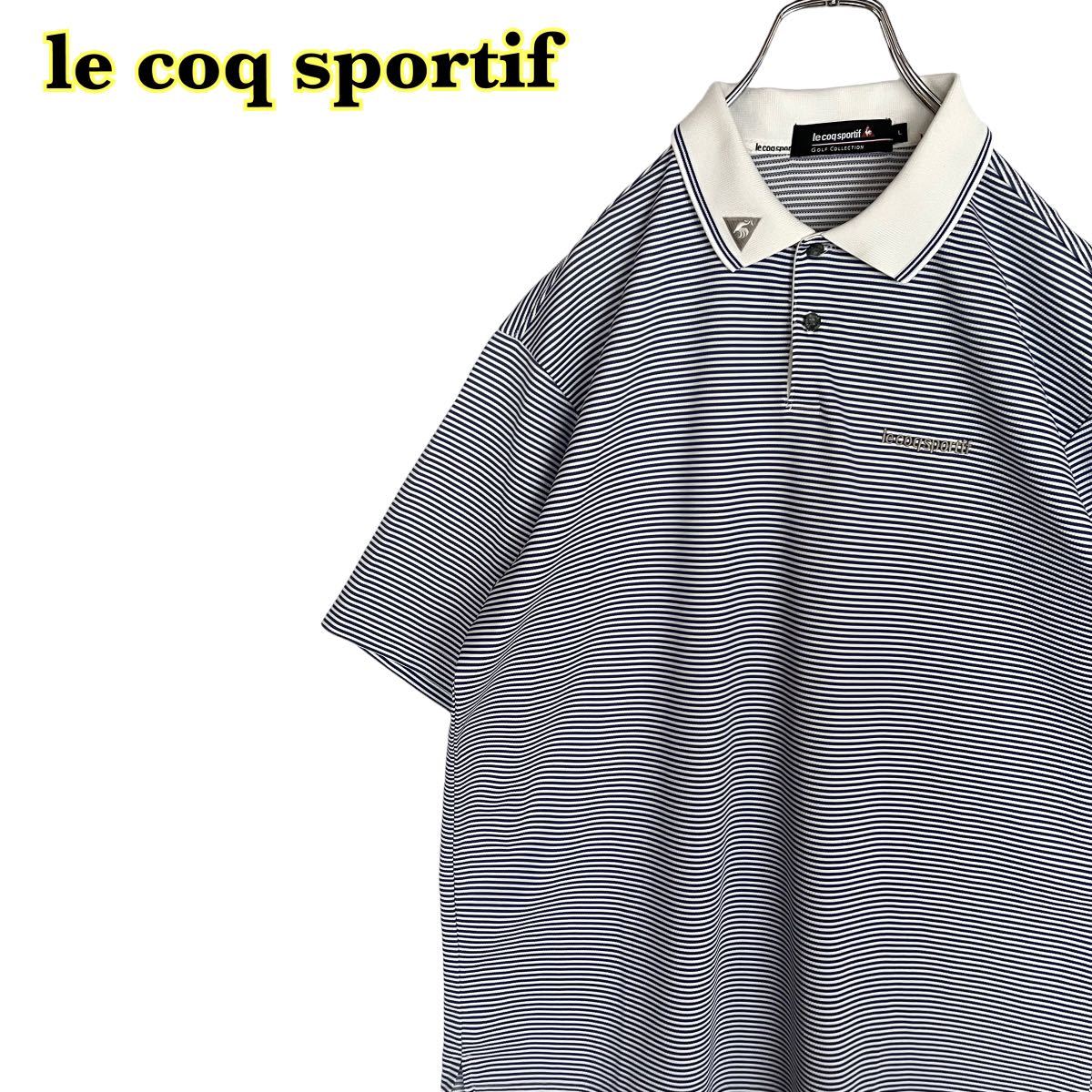 > le coq sportif ルコックスポルティフ 半袖ポロシャツ 刺繍 ボーダー ゴルフウェア メンズ Lサイズ 【AY1181】