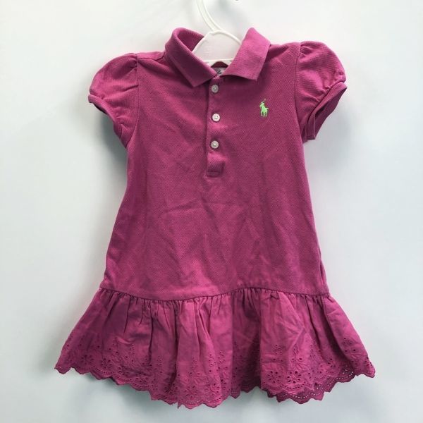 > POLO RALPH LAUREN/ポロラルフローレン 半袖 ワンピース ロゴ刺繍 ピンク グリーン レース サイズ12M キッズ