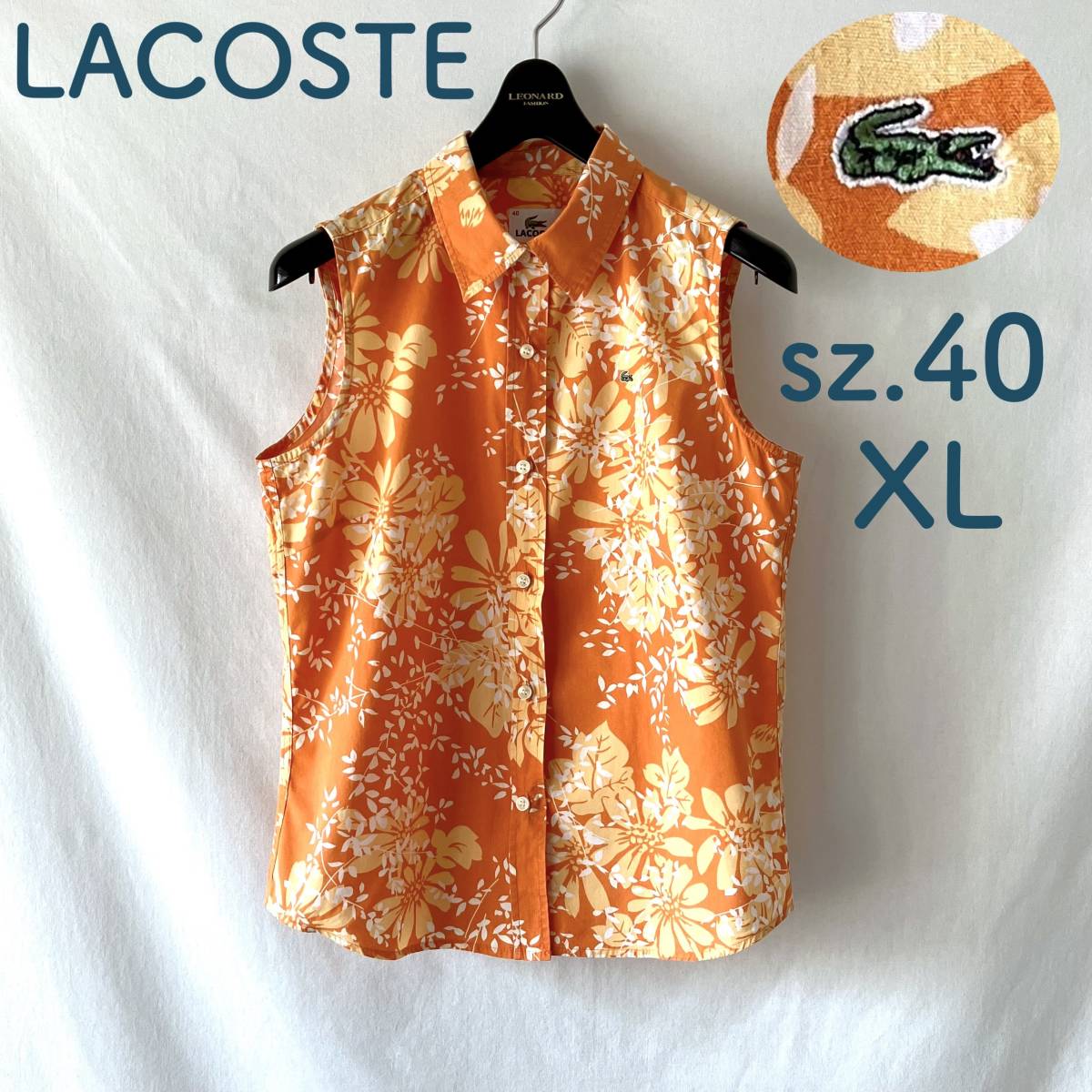 > ■ 良品 ■ LACOSTE ■ ノースリーブシャツ ■ 40 XL ■ 花柄 ■ オレンジ ラコステ ■ /