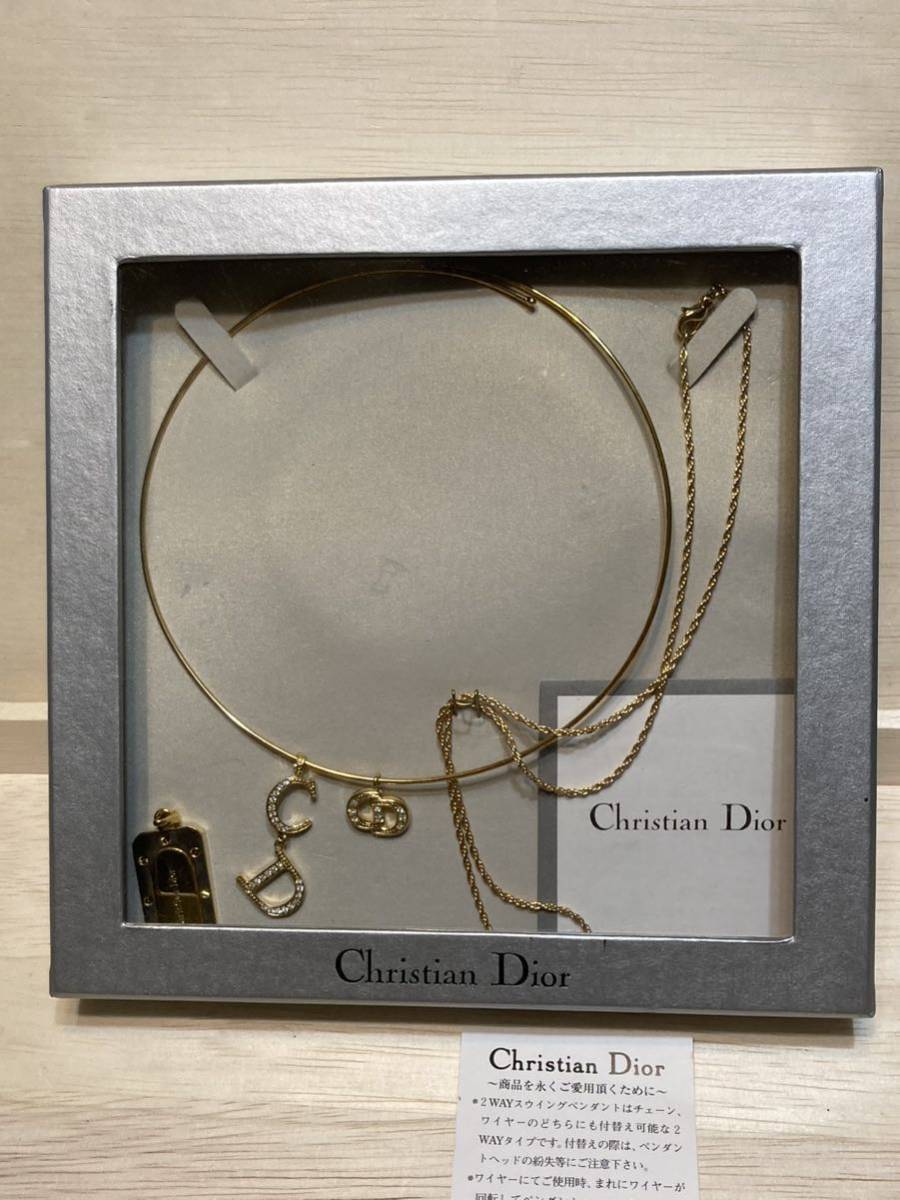 - 送0・◆ 希少 Christian Dior 2way ネックレス & チョーカー 美品 ドイツ製 箱付 + おまけ 2点 DCロゴ プレート付き セット ◆・