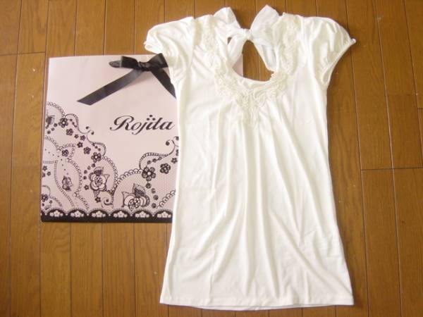 - 新品ロジータRojita シフォン リボン刺繍レース半袖カットソー白オフホワイト