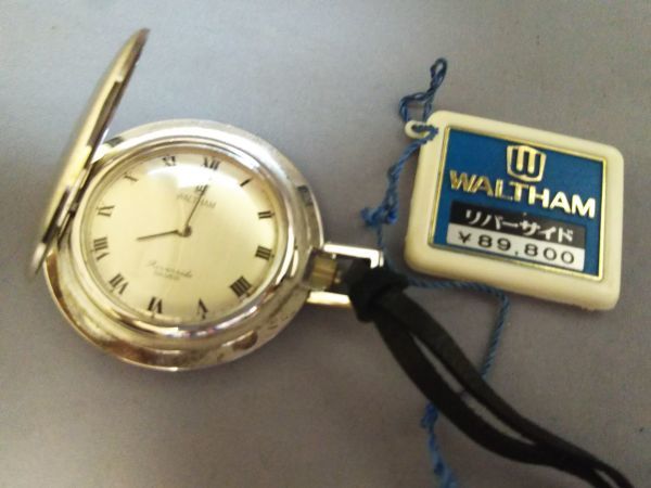 - 安値スタート! 未使用・保管品 WALTHAM ウォルサム リバーサイド 手巻 懐中時計 純銀ケース スイス製 70年代 タグ・提げ紐つき