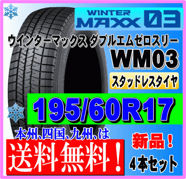 - 4本価格 送料無料 ダンロップ ウィンターマックス03 195/60R17 90Q スタッドレスタイヤ 個人宅 ショップ 配送OK