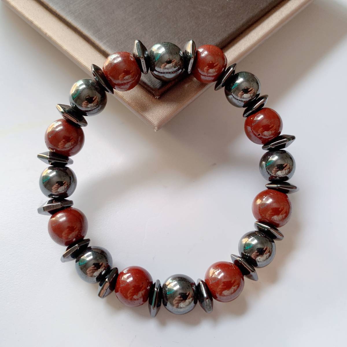 > ◇赤鉄鉱(ヘマタイト)◇パワーストーン◇ブレスレット◇天然石◇巾着袋付き◇プレゼントにも021B763