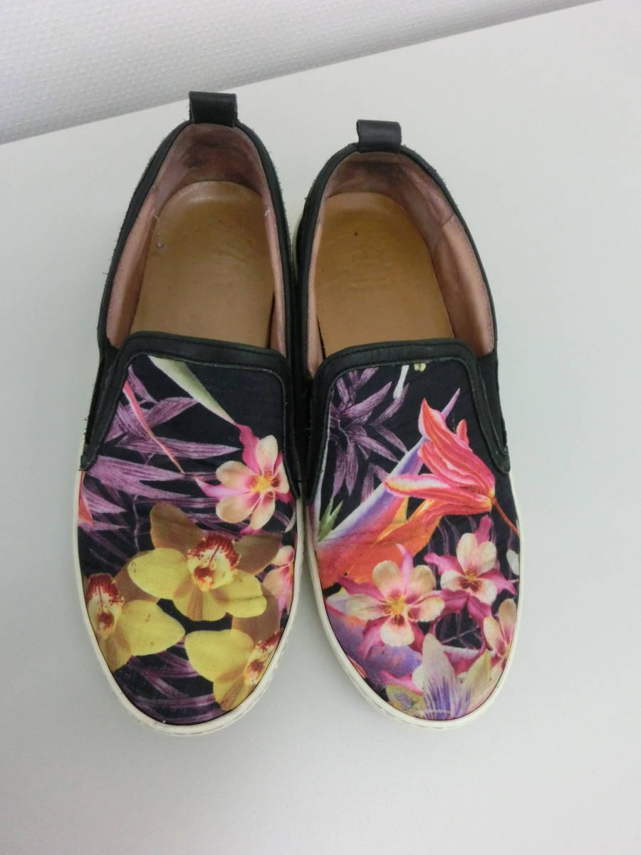 - ☆USED◆OROBIANCO◆オロビアンコ・スリップオン:花柄プリント/レザー&スウェード