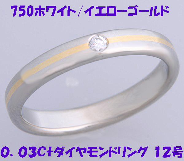- ★☆見て!0.03Ct天然ダイヤモンドリング指輪12号K18金750WG/YG!MJ-434