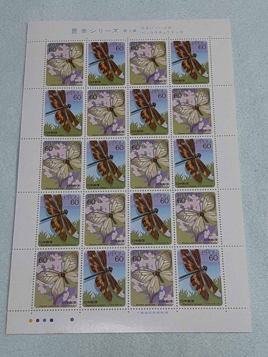 昆虫シリーズ 第3集 ウスバツバメガ・ベッコウチョウトンボ 1986 切手シート1枚