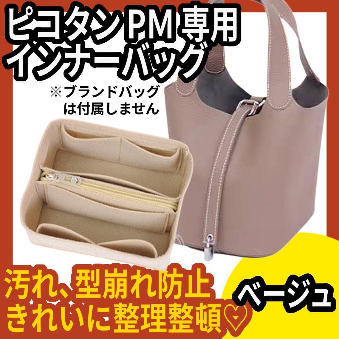 - ベージュ★ピコタン PM 18 対応★バッグインバッグ★インナーバッグ★フエルト☆